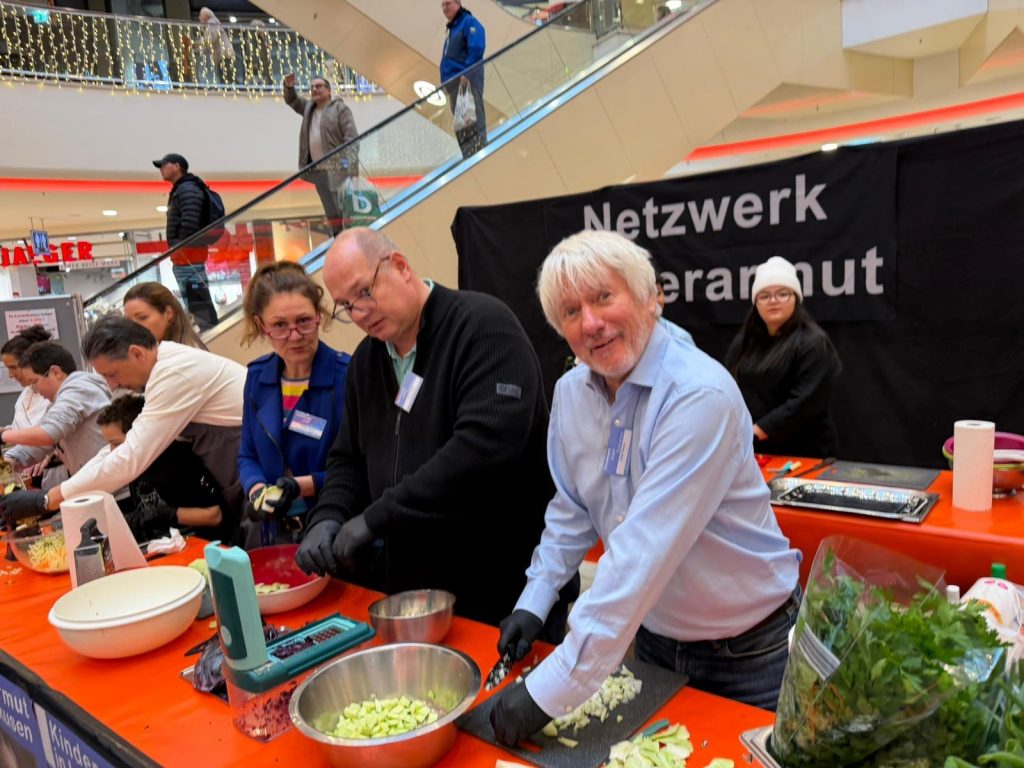 Prominente Unterstützung erhielten wir durch unseren Vorstandskollegen Harald Lindlar sowie den Kabarettisten Jürgen Becker, die zusammen mit Kindern gekocht und so für viele schöne, lebendige Momente gesorgt haben. Zahlreiche Besucherinnen und Besucher nutzten die Gelegenheit, sich über unsere Arbeit zu informieren und mit uns ins Gespräch zu kommen.