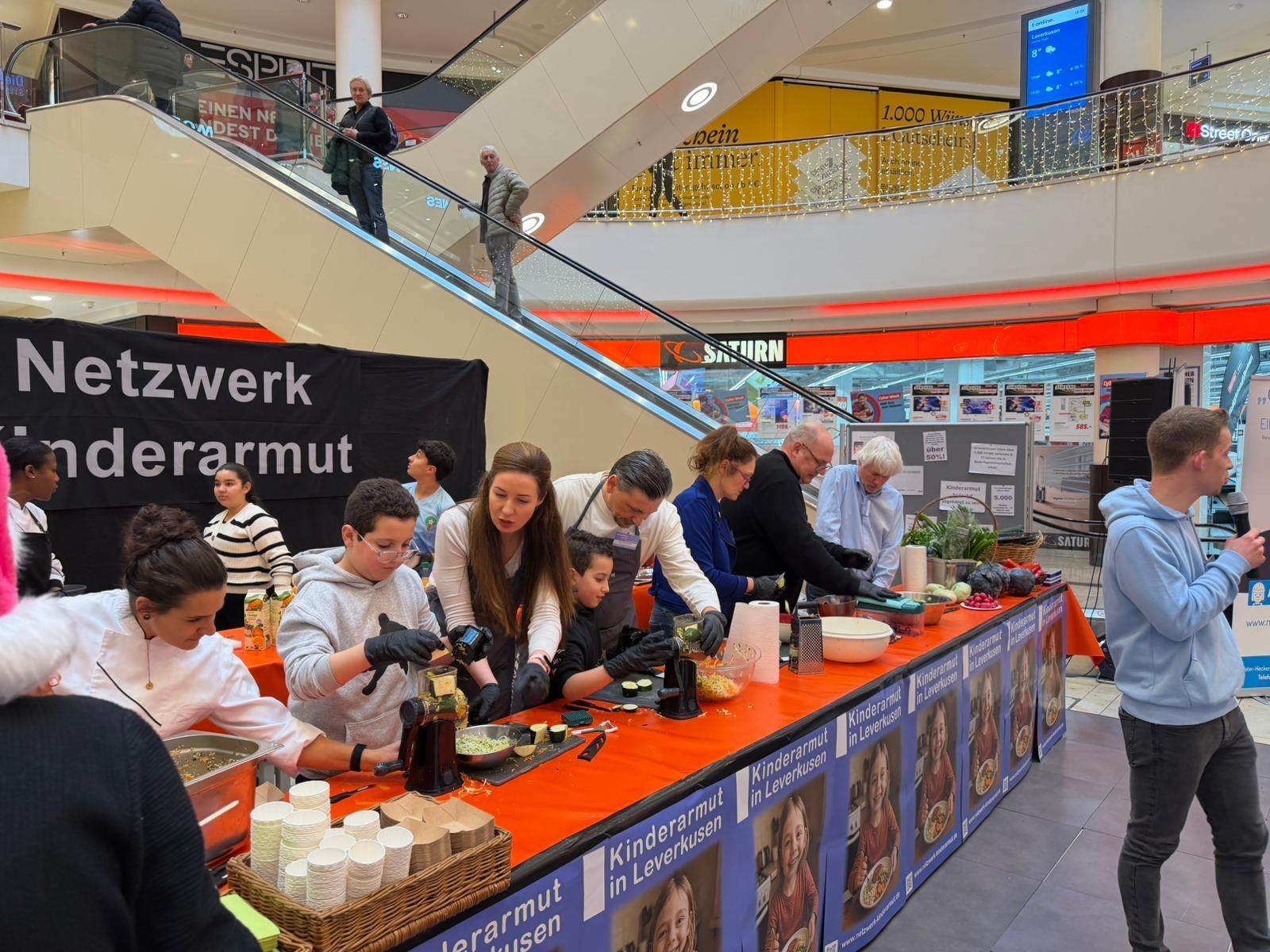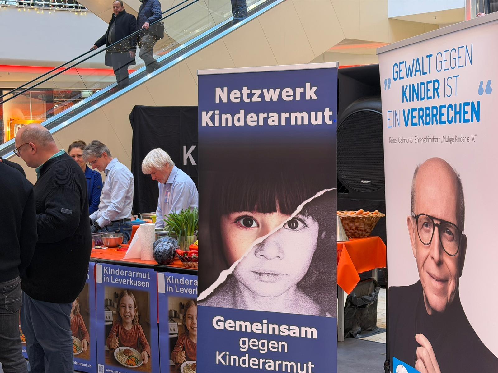 Am Nikolaustag haben wir gemeinsam mit dem Netzwerk Kinderarmut einen vielseitigen Aktionsstand in der Rathaus-Galerie Leverkusen präsentiert. Unser Ziel war es, darauf aufmerksam zu machen, dass bereits jedes fünfte Kind in Leverkusen von Armut betroffen ist – eine Herausforderung, die wir gemeinsam angehen möchten.