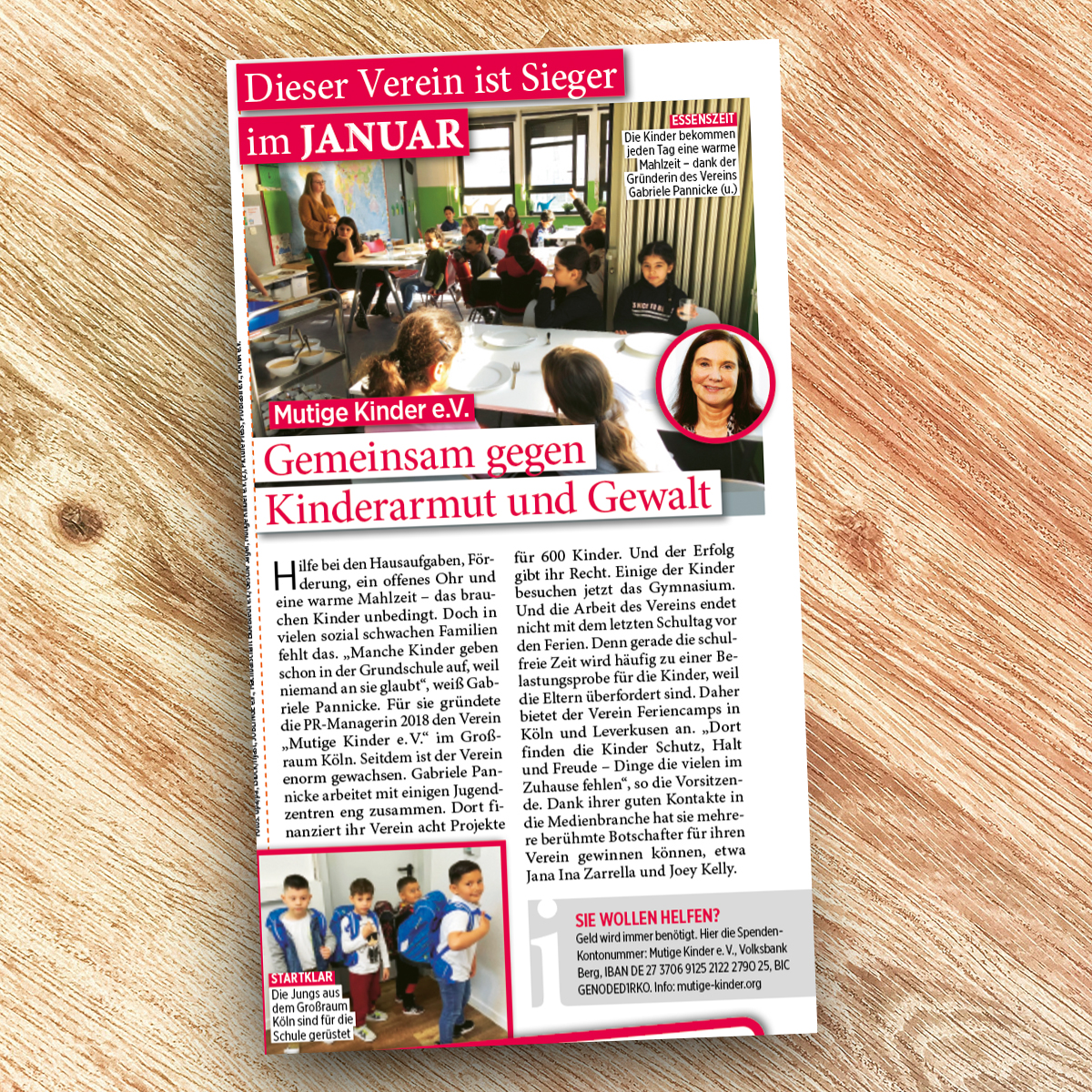 Große Freude bei Mutige Kinder e.V.: Wir wurden in der FUNK UHR-Aktion „Lebenshelden“ zum Monatssieger Januar gewählt! Damit gehen wir im Winter 2026/27 ins Rennen um den Titel des Hauptgewinners 2026.